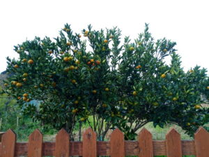 西隣さんの金柑が我が家の物干しから見ても色づいて来ているのがはっきり分かりました。アップした写真ではもう食べられるんじゃないの?、というくらいの色付きです。