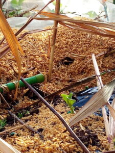 蚕豆大天の発芽です。遅いしバラバラなんですが、最終的には揃うのでお任せです。西隣さんも蚕豆の播種をお芋の後作として終えました。