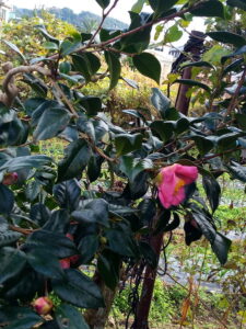 侘び椿もピークに近づき、小鳥さんの落とし物椿も咲きだしました。