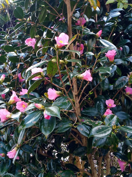 侘び椿、そして殆ど同じ花の椿が咲き、暫く椿の木の辺りは小鳥たちの通いが続きます。