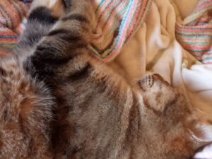 チャーちゃんは昨日まではあれほど授乳を渋っていたナガ君をグルグル声で呼び寄せて授乳させていました。お産は近いのは確実です。本能のスイッチが仔猫に注がれています。