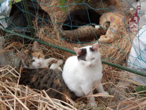 僕たち😸は刈草の上で日向ぼっこが大好き。庭が刈草で一杯にな~れ!