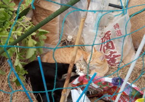 外猫さん達は私の準備している音が分かっているけれど、お腹が空いているから最近では三毛ちゃんやちゃーちゃんではなく、仔猫の代表が猫の出入り口から一歩だけ入って、『🍚お願いします。』と催促する様になりました。母猫達は隙あらばそこに居座ろう、という魂胆が見え見えでしたが、仔猫達はさっさと引き上げます。こちらもイライラしないで済みます。上機嫌で更にやって上げられる事は無いかな、と探します。上手な付き合い方をする仔猫達です。