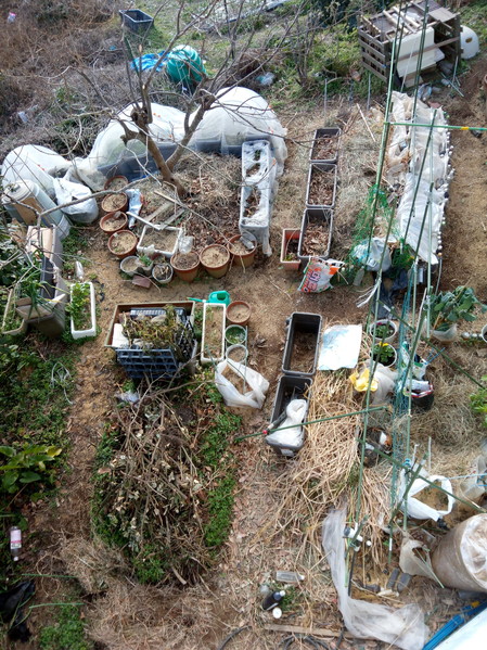 原っぱに行って更に古い草が風化して堆肥化しているのを貰って来ました。今回はカラーさんにすっぽり被せてみました。