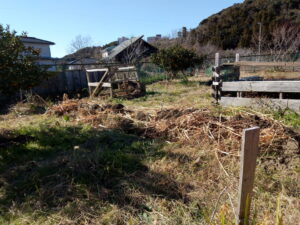 中: 昨日の夕方茅の上に溝の土をたっぷり載せました。