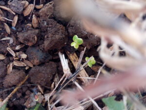 左&中: 寒縮小松菜を年末前に蒔いたのですが、発芽が見られませんでした。放線菌のコロニーが確認されていたので、不織布の下に刈草を敷いてビニールを掛けて置きました。ビニールは二重になっています。これは節分を過ぎるまで、過ぎてからもしばらくは様子見です。