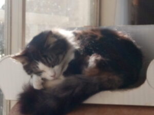 4時半頃に目覚めて雨戸を開けて喚起をしました。トラ子は今までのものにこだわる処があるのか、お布団には来ず、ベッドの私の右肩に当たる処で寝ていました。一階で箱の中でずっと私を待っていました。