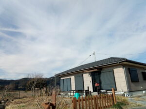外猫さんのサンルーム(写真右)…最近はここに住んでいるみたいです…の段ボールを外して農ビに光が差し込むようにしました。庭のチェックも完了。パンジーは無事でしたが、キョン対策の網は徐々にして行きましょう。