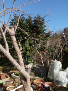 12月から咲き始めた山茶花紅の花はそろそろ終わりかもしれませんね。長い事花を見せてくれる木です。山茶花白は数個の花が着いているだけ、となりました。季節の移ろいは早いなぁ。