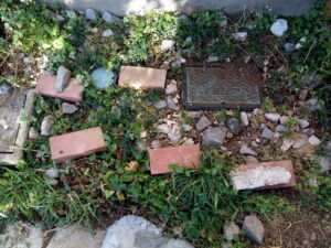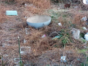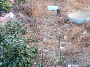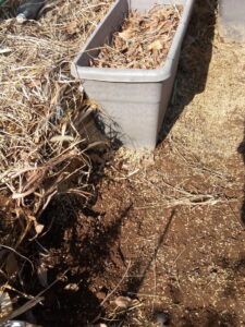 右: これから加工するプランターを置く場所に剪定枝を入れました。天地返しも致しました。。