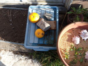 14時、お昼を食べるのも忘れて、キョン対策、プランタープロジェクト、猫の出入り口プロジェクトと色々やっていました。二階に上がったらキチンとお座りしたタイガーさんが空っぽの器の前で待っていました。笑 さっきうめに叱られた三毛ちゃんもきっと『ご飯の時間ですよ、って言いたかっただけなのよ。』、と言う事だったんでしょうね。狭い庭だけど高低差をつけるためにはプランターが必要。昔アメリカで流行った1ft plantingです。