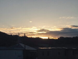 6時前、朝起きた時に居なかったタイガーさんがご飯に来ました。海の上に東西に延びた雲があります。6時には東の空は明るくなりますが、西は真っ暗です。今朝日の出は6時45分です日の入りは16時56分。