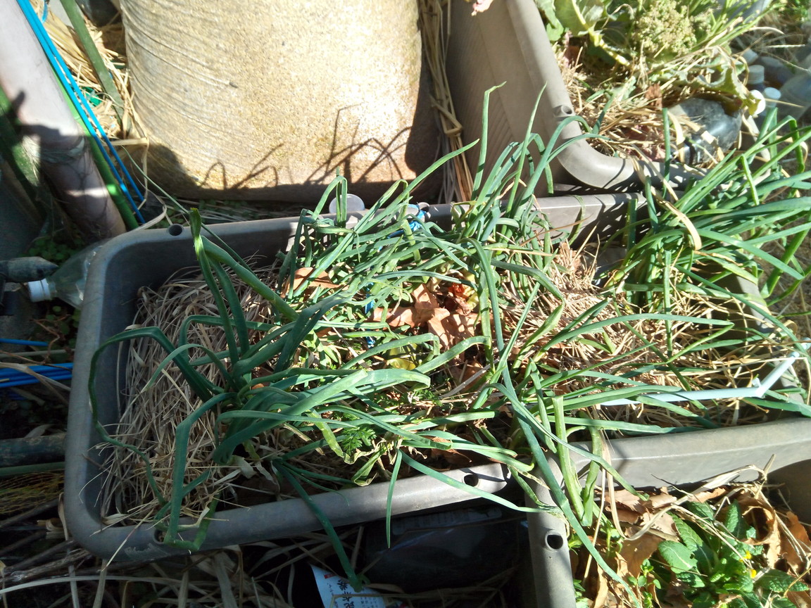 決して疑っている訳ではありません。何しろ初めてに近い実験なので、時間的には効き出すまである程度掛かると思っています。そして繰り返して行くことで初めて土の清浄化、種の清浄化により相乗効果が齎されるのでしょう。実験台になってもらっているのは昨年春収穫した小粒の玉葱達です。昨年は化学肥料に近い有機で育てていましたから、その障害がこれから出てくるのかもしれませんね。無施肥なのに確かに太くなって来てはいます。それが季節によるものなのか、それとも自然養分の吸収によるものなのかは不明です。とにかく密植していますので、玉太りは望めないでしょうね。4月半ばには全草炒め物でもしたら美味でしょうね。