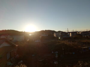 凄い日が強いです。昨夜は霙が降ったみたいです。道路がしっとり濡れています。