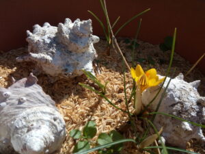 柔らかな日差しにつられ、毎年発芽する園芸種の鉄砲ユリが発芽しました。