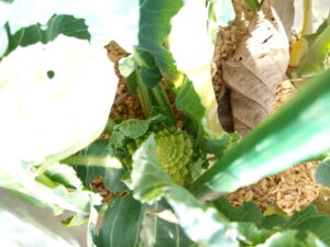 確か夏過ぎてからの事でした。更に放って置いたら残りの二本も育って来ましたが、私は残りの二本には全然期待していませんでした。しかし、写真は一番ちび助のロマネスコです。根っこは一つです。