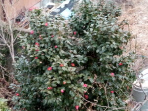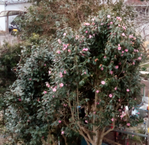 椿の花が天辺まで上がりました。13日以降に間引きをします。