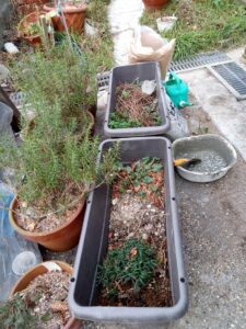 左: 抜いたプランターは庭で使います。葱を植えていたものと玉竜ですから、生姜用のプランターとして落ち葉を入れて行こうかな。