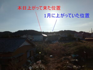 現在6時47分。日の出は6時32分だから、とっくに過ぎました。勿論、この町から日の出を見るには海岸線に行かなければなりませんが、海岸線でも今の時期は太陽が上がるのが北へ動いているから見られないでしょうね。来週もう一度寒波がやって来ますね。何故か木曜日が底になる事が多いですね。
