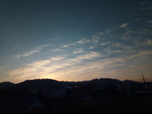 お天道様が浅間山の天辺に上がりました。今日は晴れで12度くらいまで上がりそうです。
