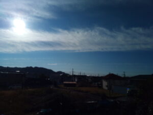 8時17分、随分はっきりした釈が東―西南西に出ました。(12時49分、M4.0の地震が千葉県南東沖でありました。最大震度は1でした。)東に氣を取られていたら、珍しく西南西でした。