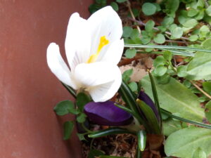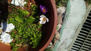 左: 玄関前のクロッカスオーシャンブルーがどんどん咲いて来ました。