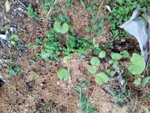 暖かくなったら出て来たから―です。柿の木下の発芽が凄いです。