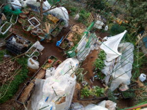 大西条の根本に海水EM活性原液を撒きました。やっとね。トウモロコシも蒔きました。これもようやくね。外猫さんに掘り返されないためにEMボトルをずらりと並べました。猫は柔らかくなった土をサッと見分ける天才です。