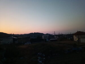 6時半過ぎ、柔らかな日差しが窓辺に届きました。今朝の日の出は6時。晴れているから30分で山の上から太陽が