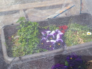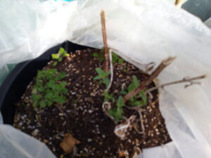 右: Iさんの奥さんから頂いたサルビアレウカンサメキシカーナが冬を越しました。ドキドキしながら覆いを外したら出ていました。ばんざ~い!!