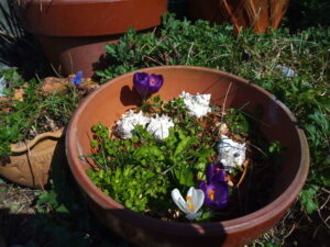 一昨日鉢増し・株分けしたタイムを庭に持って来ましょう。完了!