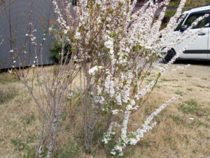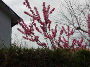 春があまりにも急に来て、少し戸惑い氣味なのは我々人間ではないでしょうか。昨日、ジョウビタキさんのヒッ、ヒッと言う声を聴きました。ここいら辺に居たジョウビタキさんなのか、もう少し西の方に居て北上中のジョウビタキさんなのか、分かりませんが、声は確かにジョウビタキさんでした。苗代も始まりました。杏の花も咲き始めました。ちゃーちゃんが来て何やかや、これから庭の片づけをします。お昼は食べられなかったので、おやつに葛餅を食べました。空は大きな分断蜘蛛がうろこ状に広がっています。明日の雨がれなければよいですが。真北-北北西には一寸変わった雲が出ています。