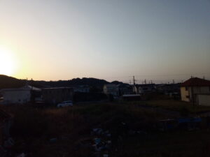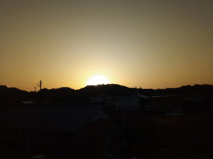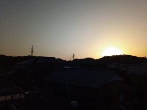 5時55分が今朝の日の出、山の上に日が上がって来るのは大体30分後です。鴬が名調子です。カイヅカイブキがなくなった今も近くに来て鳴いて呉れます。鶯の力強い声を聴きながら緑茶を味わうのは本当に贅沢な時間です。