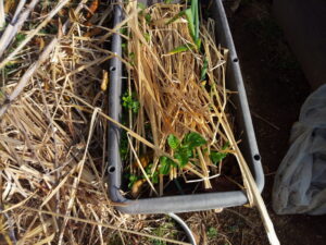 萱を元の第二堆肥枠に詰めて置いたら小さな蜘蛛が沢山出て来ました。きっと野菜たちの役に立ってくれるはず。