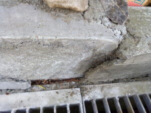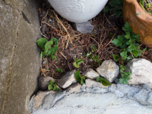 左: モルタルを打つ前に綺麗に刈って根も8処分した筈のドクダミが元気に復活!?