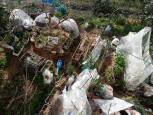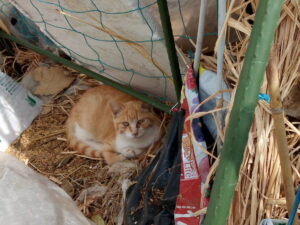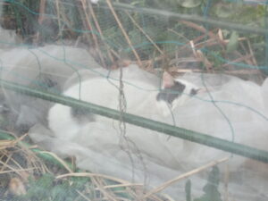 はっちゃんの居るのは第一畝の支柱間です。ナガ君とクロスケはサンルーム。サンルームは未だ撤去出来ないなぁ。その前に猫小屋ルーフの風よけを作って上げよう。もろに北と北東の風を受けるものね。