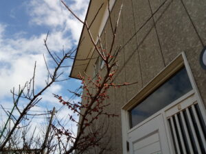 西隣さんの梅には既に実が小さいけれどふっくらしています。