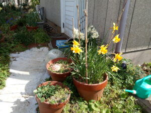 中&右: 玄関前の鉢達もこんな日の当たり具合です。