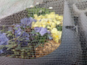 玄関アプローチのプランターにはノースポール、パンジー、ビオラとキンギョソウ(種から育てました)が植えられていますが、