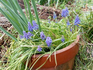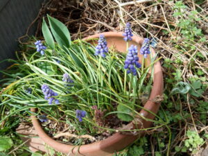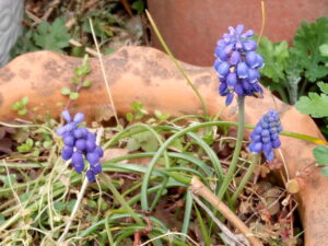 雨と暖かさでボンボン上がるムスカリです。強いですねぇ。西隣りさんでも、Nさんの庭でもネリネの白い花が咲き始めました。瞬く間に白い絨毯が出来る事でしょう。