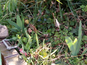 右: お隣のイチハツが急に葉が太くなりました。少し前まで心配していたんですよ。今年の白い花は見られるのかなぁ、って。