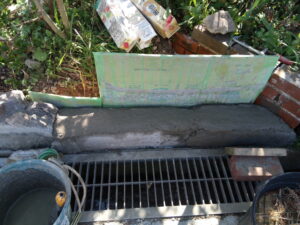 今日は昨日硬化させたコンクリートにカチオンシーラーを塗って(完了!乾燥までは1時間掛かります。)乾燥させてからモルタルを積んで行き、高さを調整します。