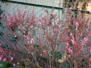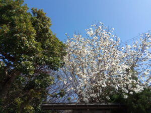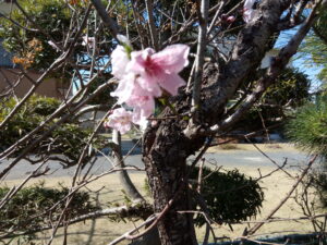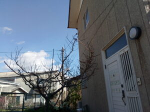 右: 西隣さんの梅の実も膨らみ始めています。勿論、お米粒より少し大きいくらいです。