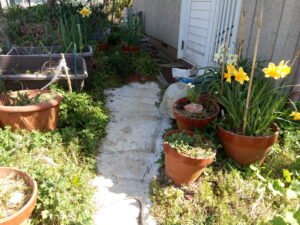 右: 庭全体で見るとこんな感じです。上の庭の写真と比べるとどっさり草が入りました。