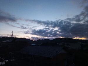 左: 昨夕、南に光る点二つ。肉眼では20倍くらいに拡大して見えました。UFOか、と思いましたが、ヘリの音が近づいて来ました。