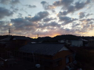 中&右: 今朝の空。南東に収束した雲が見えました。