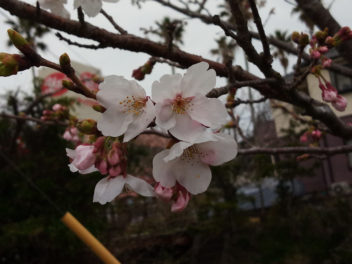 公民館前の清水川に沿って植えられたソメイヨシノ?この町では珍しいですね。と言うより、東京みたいにソメイヨシノだらけの方が普通じゃないのかもね。山桜と言っても大島桜っポイものや様々ありますが、これも中々良いものです。自然な桜に慣れるとソメイヨシノがずらりとある東京は確かに華やかで美しいけれど、ネオンの美しさのような氣がします。