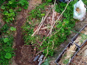 発芽して呉れるかなぁ。水分は斜面なので結構流れてくると思うんですが、面白いのは猫達は大体草を持った通路は避けて通ります。但しナガ君は別。笑 そのすぐ脇の畝に刈って来た草を置きました。二畝の南では伏せこみを始めようと思います。2つプランターがあるので、それをそのまま刈草を入れながらサツマイモプランターにして行きます。