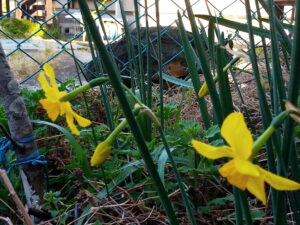 上段右: 庭の黄水仙を移植して玄関前に持って来ました。