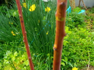 左: Nさんの処から頂いた杏の枝の大きい方も芽の動きがありました。